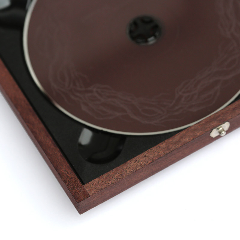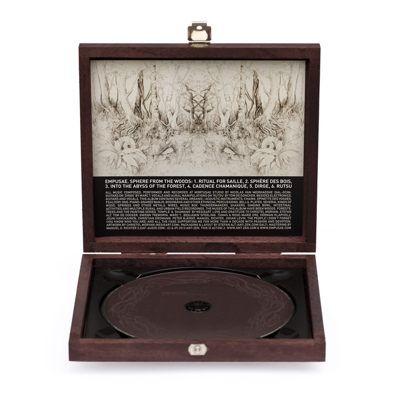 For this new work I did for Emusae (aka Nicolas Van Meirhaeghe), we decided to develop 2 different kinds of boxes. The classic crystal case, with a closeup photo from a tree and a drawing of roots on top, and a wooden collector box.